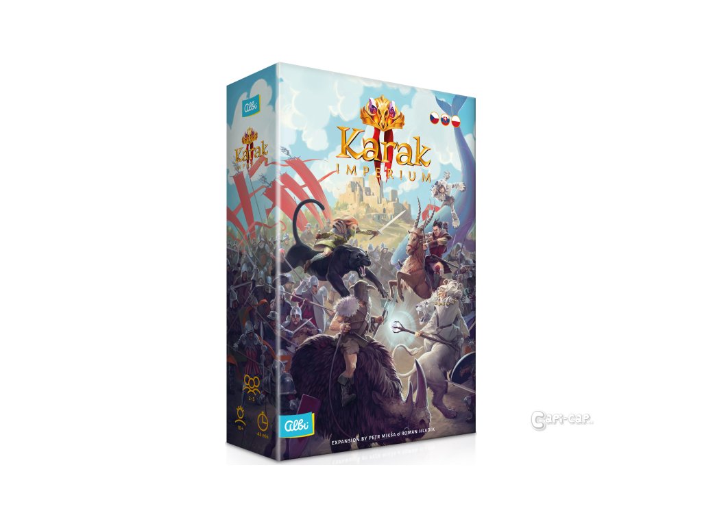 Hra Karak 2: Imperium obsahuje: 9 dílků krajiny, 5 karet hrdinů, 5 měst hrdinů, 5 kartonových figurek hrdinů se stojánky, 5 velkých kostek hrdinů, 2 nové kostky oddílů, 6 žetonů armád/předmětů, 1 žeton koruny.