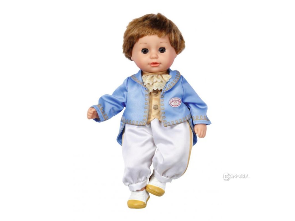 Panenka – chlapec velikosti 36 cm nosí zlato-bílé boty, které jsou to pravé na taneční parket. Bílé kalhoty jsou z boku potištěny zlatým proužkem. Horní část oblečení je 2v1: zlatá vesta s královsky modrým kabátkem a našitou krajkovou náprsenkou.