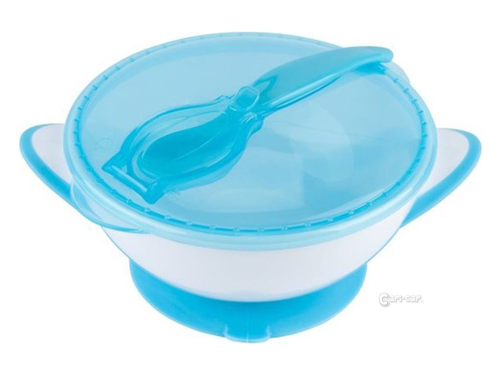 BABYONO Miska uzavíratelná s přísavkou a lžičkou - modrá 300 ml