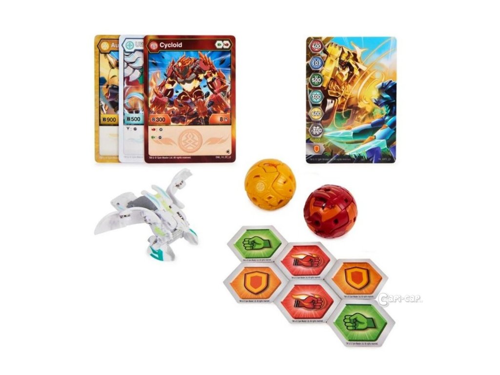 Balení obsahuje 1 Bakugan Ultra, 2 Bakugan, 6 Baku-žetonů, 3 karty charakteru, 1 Gate kartu, instrukce a pravidla.