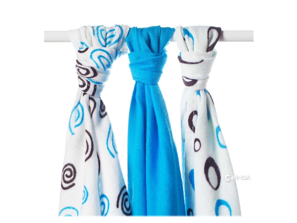 Bambusové pleny XKKO BMB Spirals&Bubbles Cyan MIX 70x70cm - 3ks