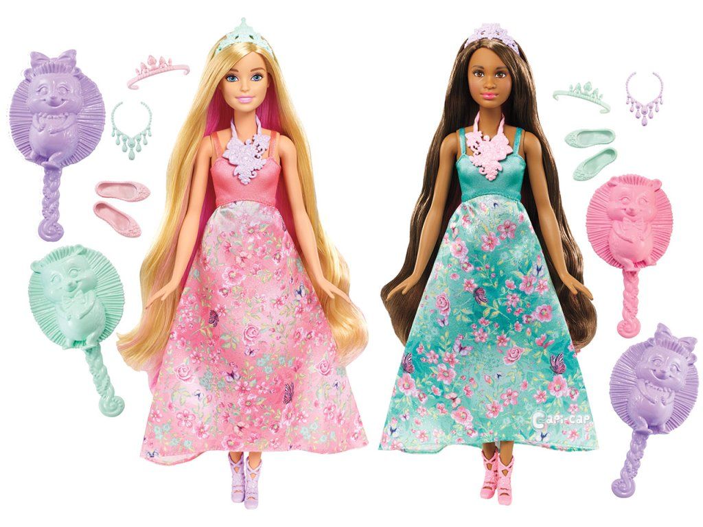 Zažij spoustu zábavy s těmito princeznami 3 v 1 z kolekce Barbie Dreamtopia. Každá princezna má nádherné dlouhé vlasy, které dokáží měnit barvu. Vyber si Barbie princeznu s blonďatými nebo hnědými vlasy. Obě panenky jsou oblečeny v nádherných šatech zdobených květinovými potisky. Změň každé z panenek její vzhled díky nové barvě vlasů. Otoč jí temenem hlavy a vytvoř tak zářivě růžový účes. Nebo použij houbičku a studenou vodu a vytvoř princezně zářivě fialové proužky. Pečuj o každý účes, který vytvoříš, s pomocí hřebínku. Nasaď panence korunce. Malé kadeřnice si zamilují objevování nových světů a účesů spolu s Barbie princeznou z Šeptajícího lesa v Dreamtopii. Vytvoř si kompletní sbírku všech panenek a doplňků z kolekce Barbie Dreamtopia.