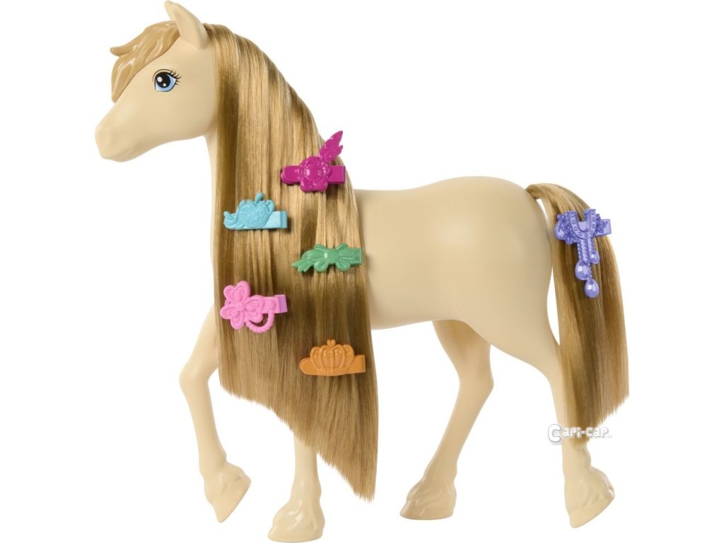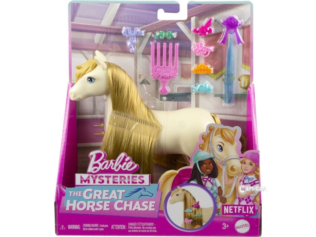 Inspirujte se novým seriálem Barbie® na Netflixu a pusťte se do hry s poníky! Vyberte si nové nejlepší kamarády panenky Barbie®, koníky Tornado a Pepper. Každý má extra dlouhou hřívu a je dodáván s přídavnou hřívou, hřebínkem a šesti roztomilými sponkami.