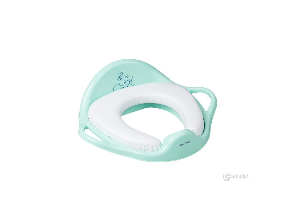 Dětské barevné sedátko na WC měkké s obrázkem králička. Vyrobené z kvalitního plastového materiálu. Je lehce omývatelné a díky svému tvaru zaručuje Vašemu dítěti bezpečí a pohodlí. Zvýšená přední část zabraňuje úniku moči. Má plastové úchyty a sedací část je měkká a potažená PVC. Ideální pro děti, které se učí samy chodit na záchod. Sedí ke většině záchodových prkének. Rozměry: cca 38x32 cm. Vhodné pro děti od 18 m, do 25 kg.