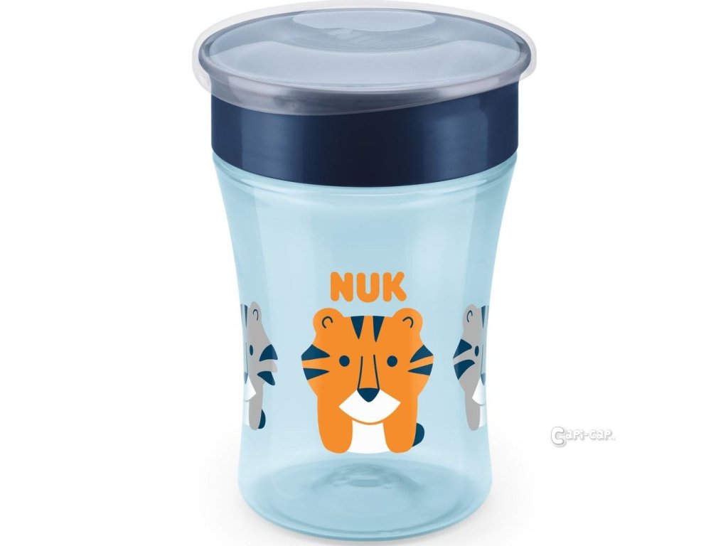 Dětský hrníček Magic NUK 360° s víčkem. Revoluční uzávěr umožňuje pít bez náustku či brčka z každé strany, díky čemuž se dítě učí samo pít jako z normálního hrníčku. Neobsahuje BPA. Charakteristika: