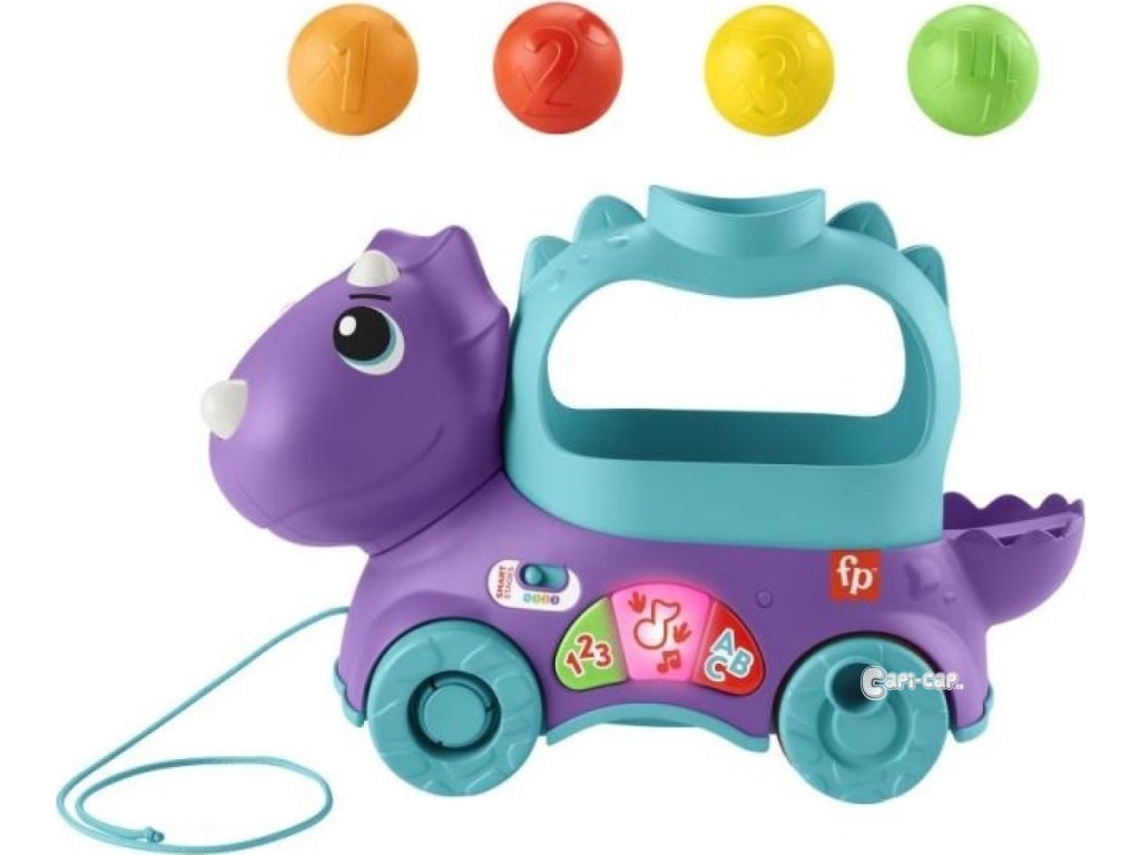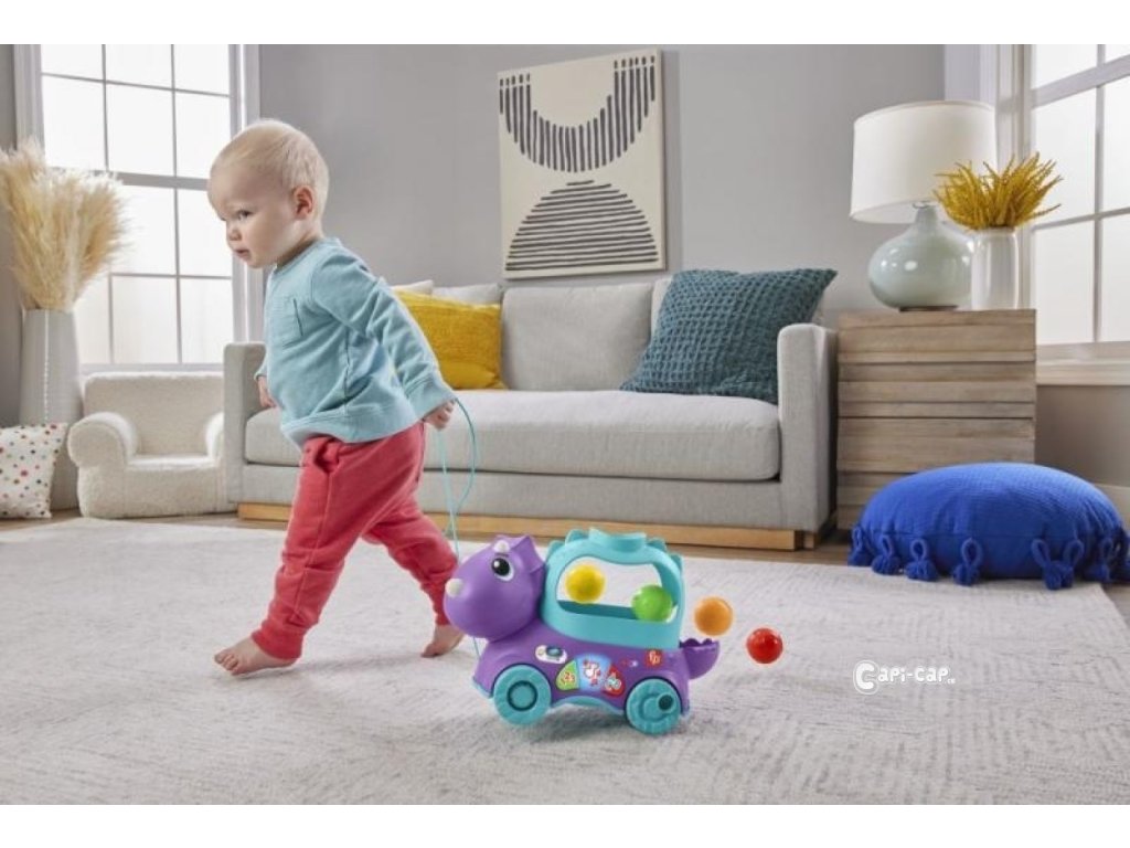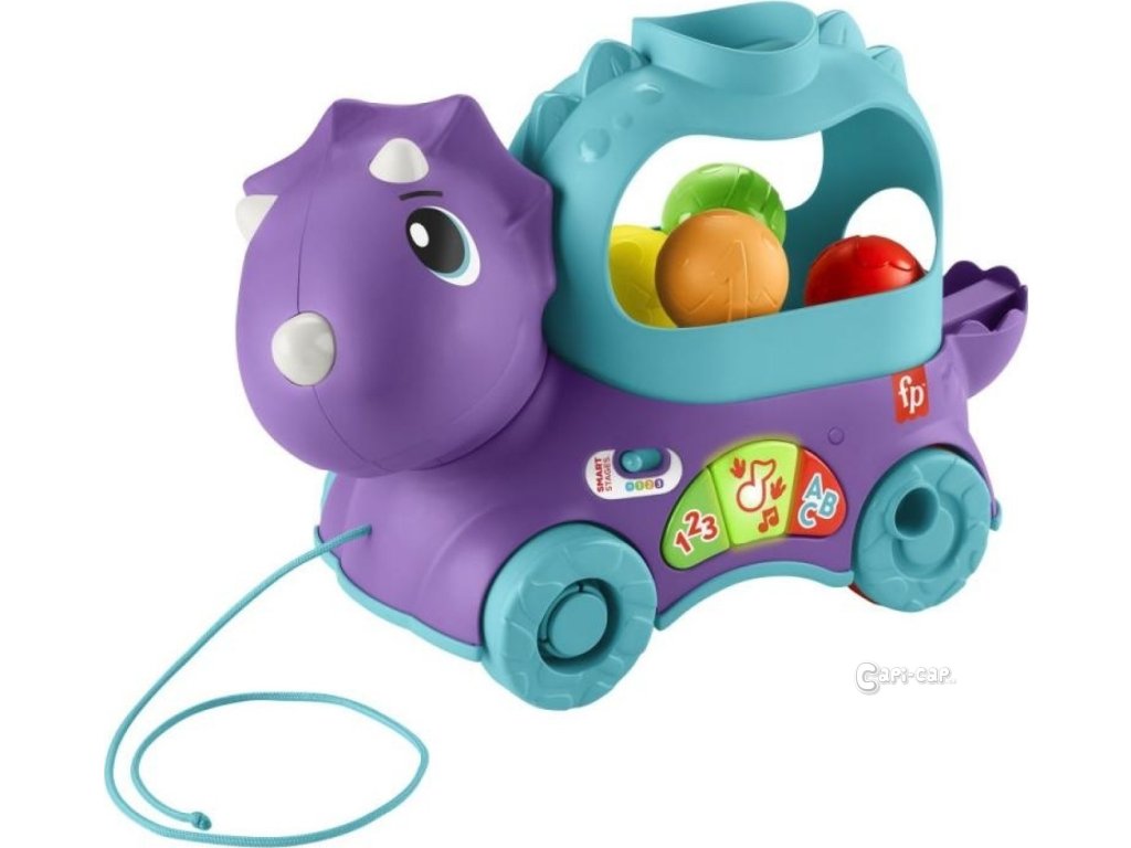 Hrající dino s vyskakujícími míčky od Fisher-Price® roste spolu s dítětem – podporuje technologii Smart Stages™ díky níž můžete zvolit takovou úroveň obsahu, která je pro vaše děťátko zrovna nejvhodnější. Nabízí tři režimy hry. Stisknutím tlačítek ABC, 123 a Hudba se aktivují světýlka a zábavné naučné písničky, melodie a fráze. Čtyři barevné míčky lze také roztřídit přes dinova záda nebo ocas do kyblíku a pokračovat tak v zábavě!
