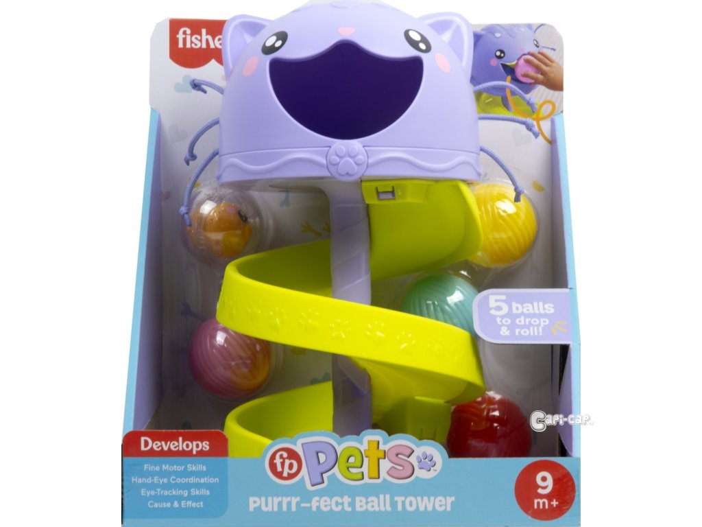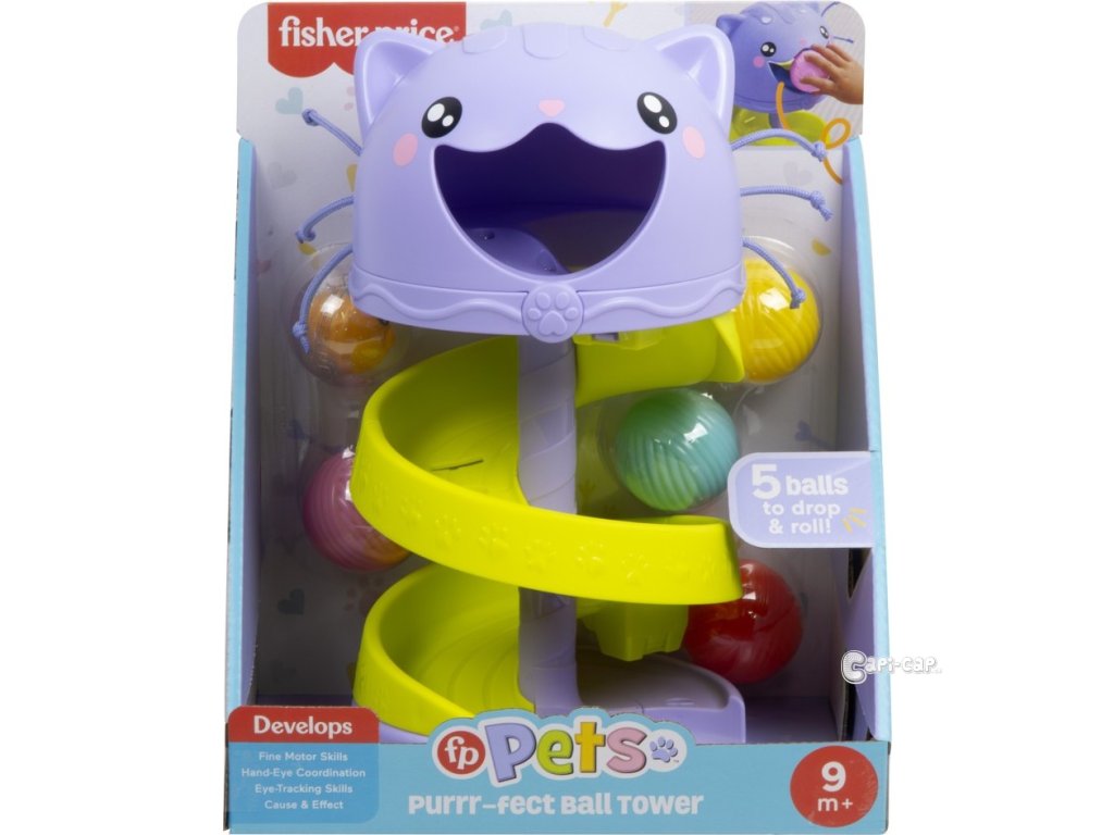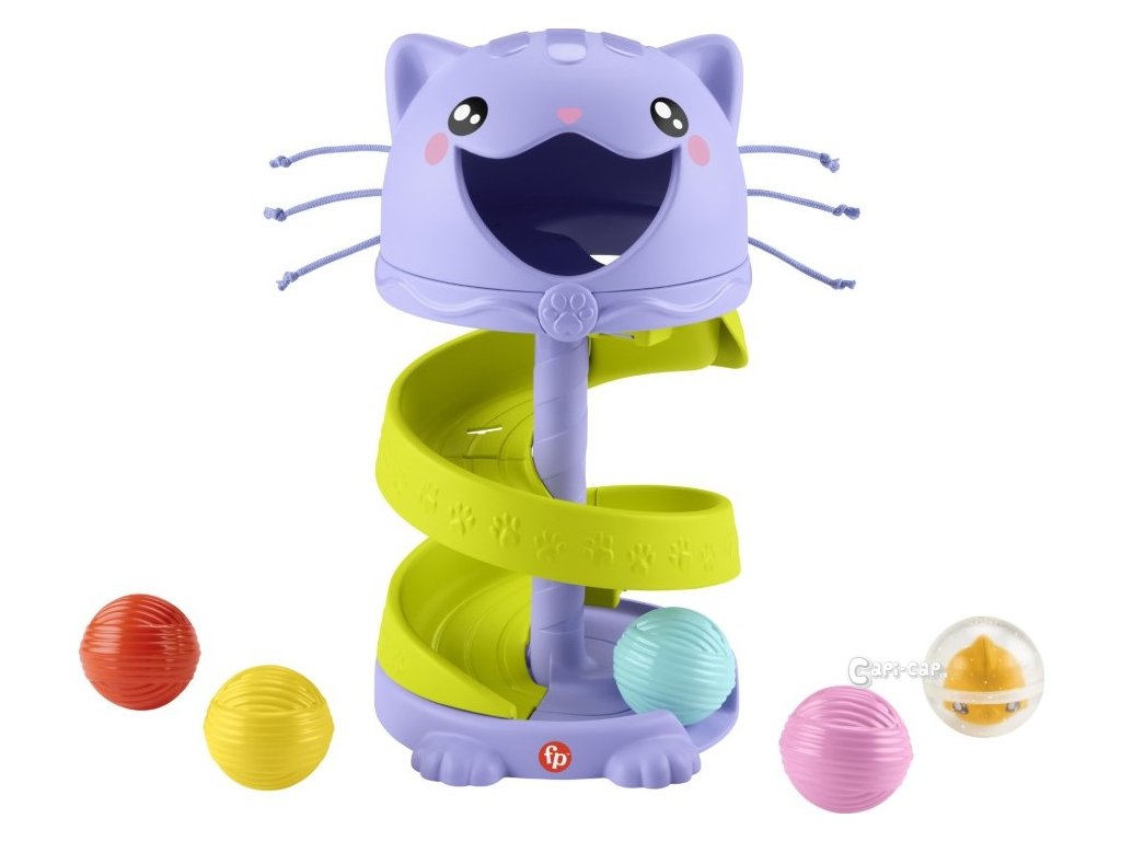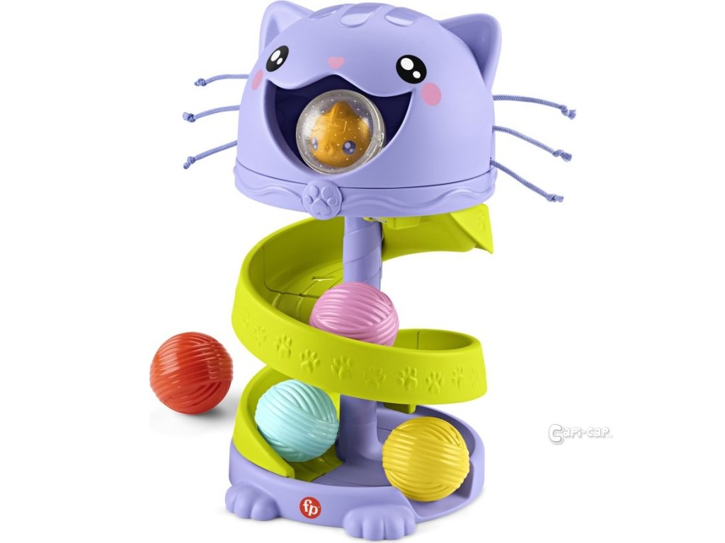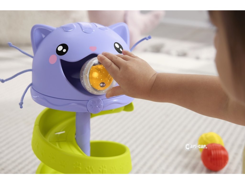 Miminka a batolata si zamilují kutálející se míček v Kočičkové kuličkové dráze od Fisher-Price®. Tato parádní kočička má stupňovitou kuličkovou věž se 4 snadno uchopitelnými barevnými „přízovými“ kuličkami a 1 kuličku s chrastící rybičkou, kterou mohou děti vložit do tlamičky kočičky a poslat ji po dráze dolů, aby mohla zábava začít od začátku! Tato hračka je skvělým způsobem, jak si dítě při hře posiluje jemnou motoriku a zažívá vzrušující příčiny a důsledky. Barvy a provedení se mohou lišit.