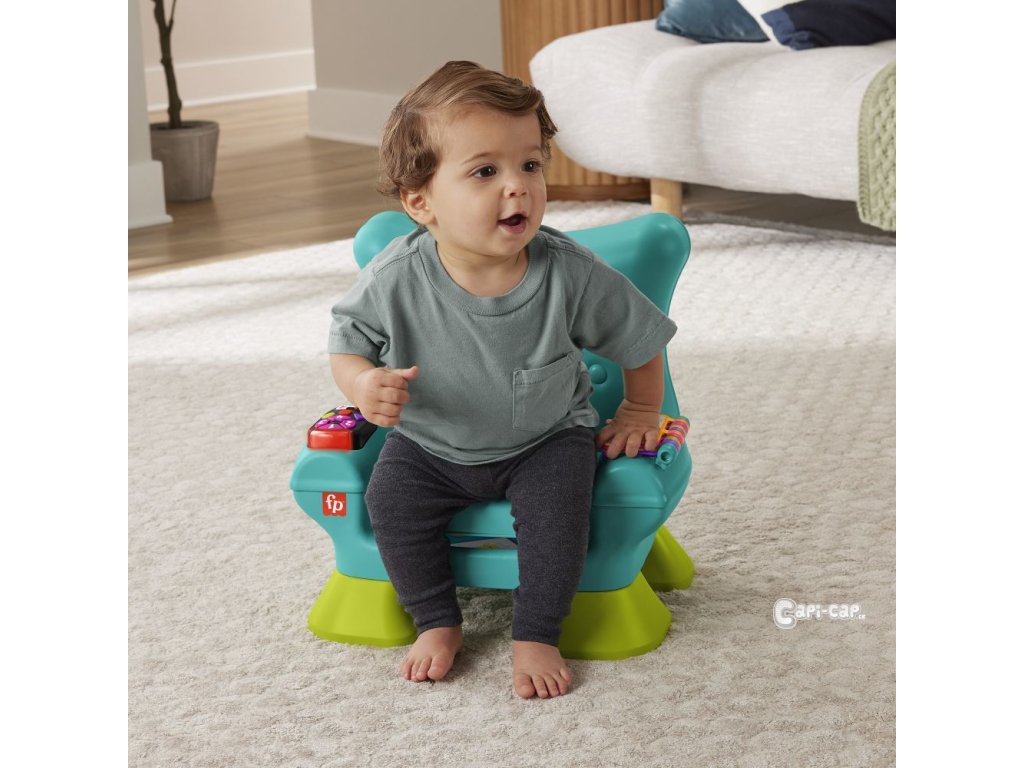 Křesílko Smart Stages™ od Fisher-Price® představuje pro vaše dítě útulné místo, kde si může hrát a objevovat svět. Interaktivní křesílko pozná, kdy si dítě sedne nebo vstane, a může na to reagovat zábavnými písničkami a frázemi! Jakmile se do něho děťátko posadí, čeká na něj spousta zábavných aktivit, včetně svítícího dálkového ovladače s tlačítky s čísly a tvary, listovací knížky a nadzvedávajícího polštářku se skrytými překvapeními. Tři úrovně učení Smart Stages™ obsahují více než 120 písniček, zvuků a frází, které dětem při hře představují barvy, tvary, čísla, počítání a protiklady.