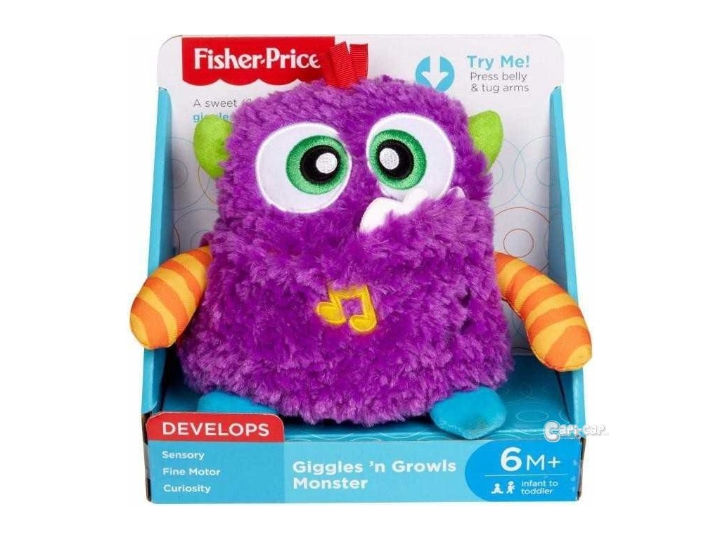 Roztomilá příšerka z různých materiálů, které budou děti nadšeně prozkoumávat. Tato plyšová příšerka je vždy připravena si hrát! Stačí zmáčknout její bříško a uslyší bláznivé zvuky a krátké melodie. Roztomilá obluda se bude chichotat, anebo začne vrčet. Příšerce se vejde do tlamy i ruka, ale nebojte se, nekouše! Rozdílné textury hračky, zábavné zvuky a zářivé barvy stimulují smysly vašeho dítěte tím nejlepším způsobem. Uchopování, mačkání a tahání příšerky posílí u dětí koordinaci zraku s pohyby rukou a jejich zručnost.