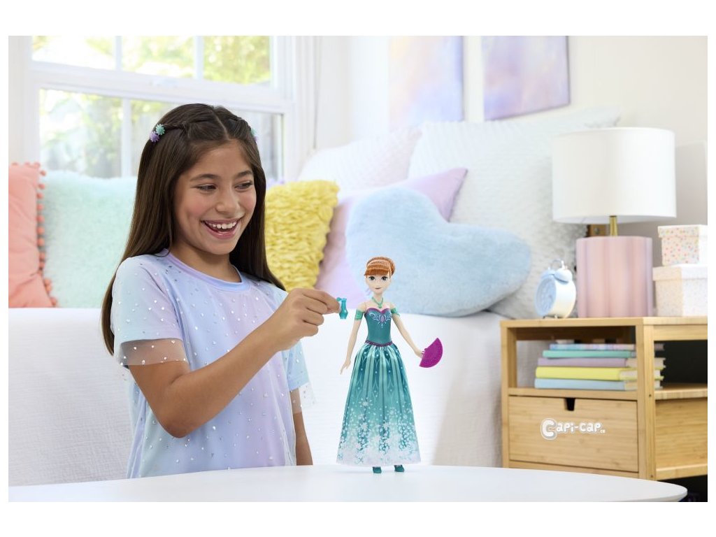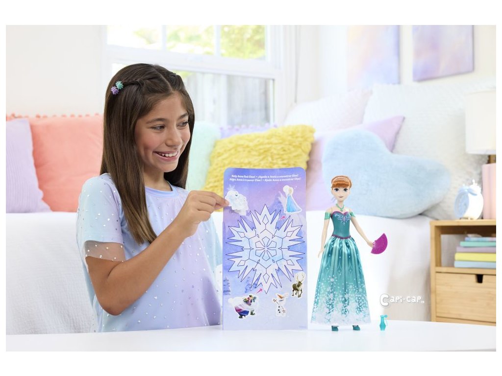 Úžasný zážitek z rozbalování děti zažijí s touto módní panenkou Annou a doplňky s překvapením. S každým otočením obalu se odhalí jiné překvapení - celkem 5 doplňků a 5 samolepek! Posledním odhalením je módní panenka Anna ve tvarovaném vršku a sukni z měkkého materiálu. Součástí je také herní scéna s aktivitou bludiště.