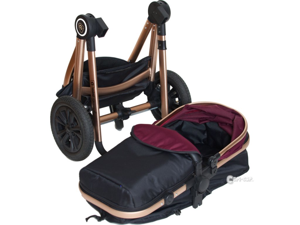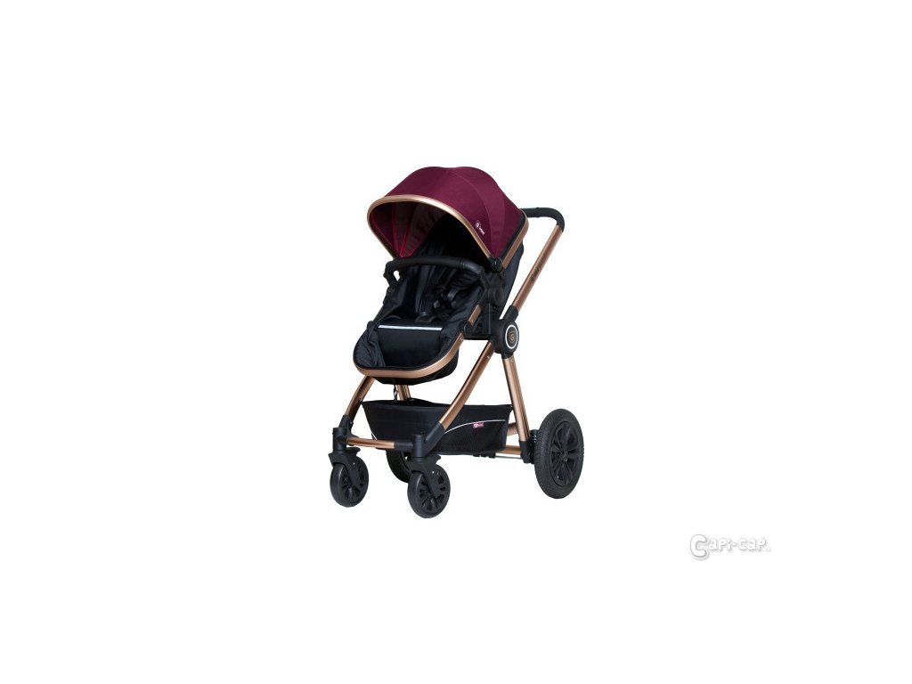 Kombinovaný kočárek Gmini Grand 2v1 v v provedení fuchsia se zlatou konstrukcí.