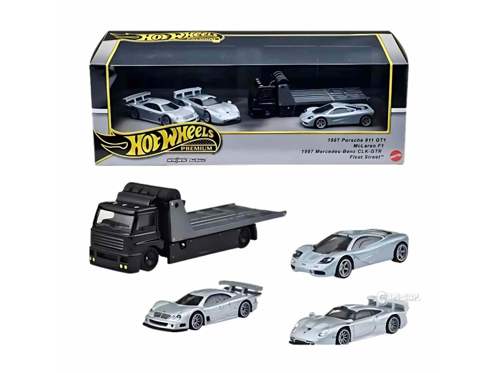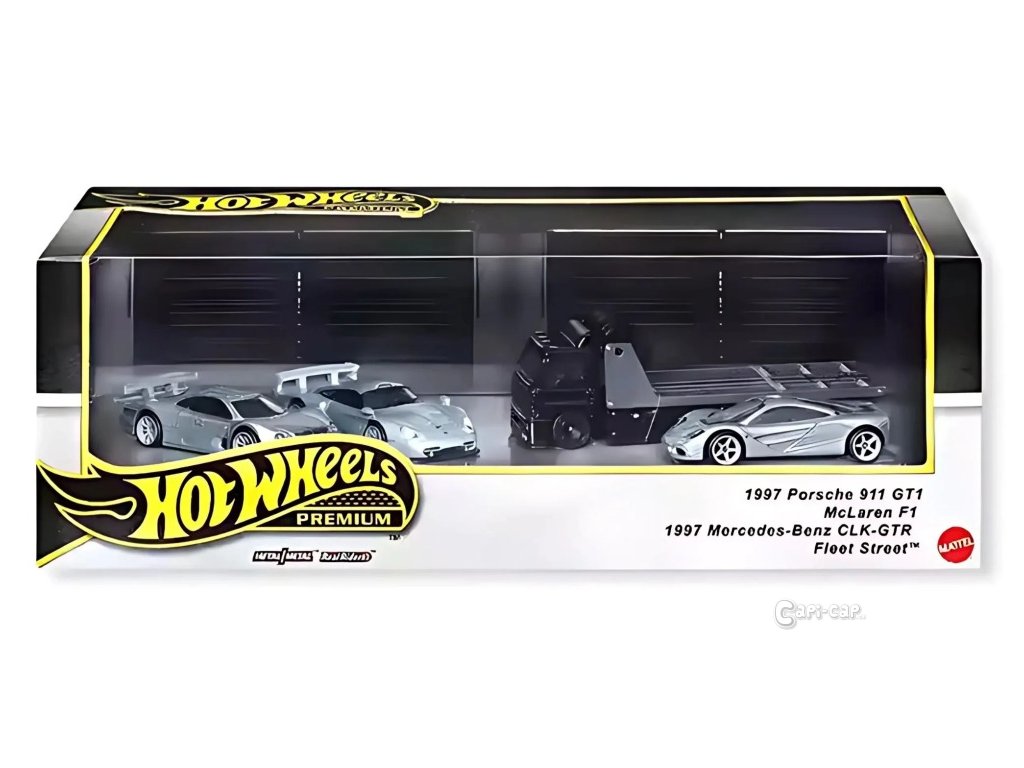 Hot Wheels 3ks prémiový angličák s týmovým tahačem - závod Le Mans