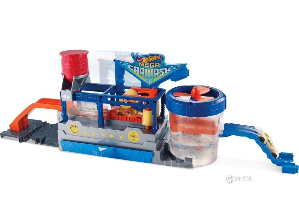 Po každém závodě je nutné dát svoje auto opět do pořádku. Vyprav se do zcela nové myčky od Hot Wheels®, která je vybavena automatickým pohyblivým pásem a technologií pro změny barvy. Najeď svým vozidlem do myčky, zatáhni za páčku a automatický pás se dá do pohybu. Jakmile na vozidlo z kolekce Color Shifters začne téct teplá voda, vozidlo změní barvu. Páni! Nyní je čas vozidlo pořádně vysušit. Jakmile je hotovo, automatický pás posune vozidlo do nádržky s vodou, kde vozidlo opět změní svou barvu! Mega myčka podporuje kreativní myšlení a zároveň přináší malým závodníkům hodiny hraní. Myčka má připojovací místa, pomocí kterých ji snadno připojíš ke svým dalším herním setům od Hot Wheels®. Vytvoř si svět plný závodních tratí a zábavy!
