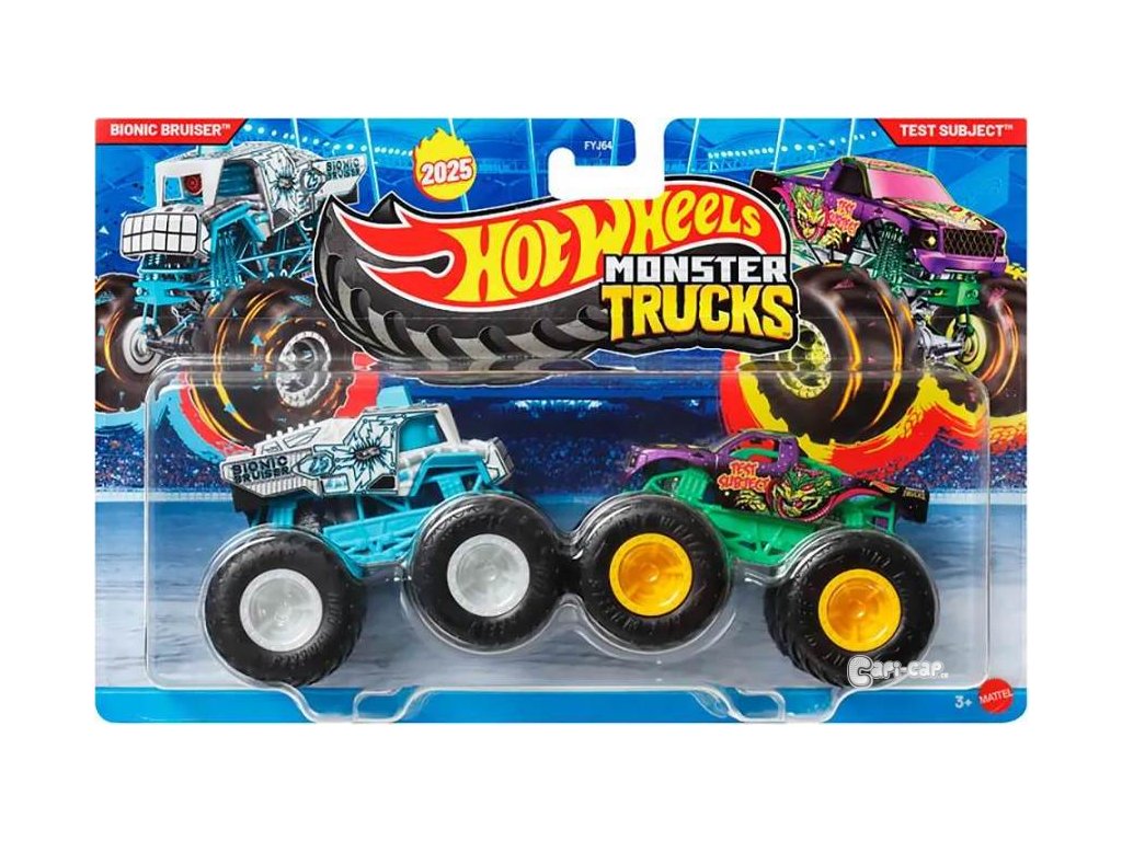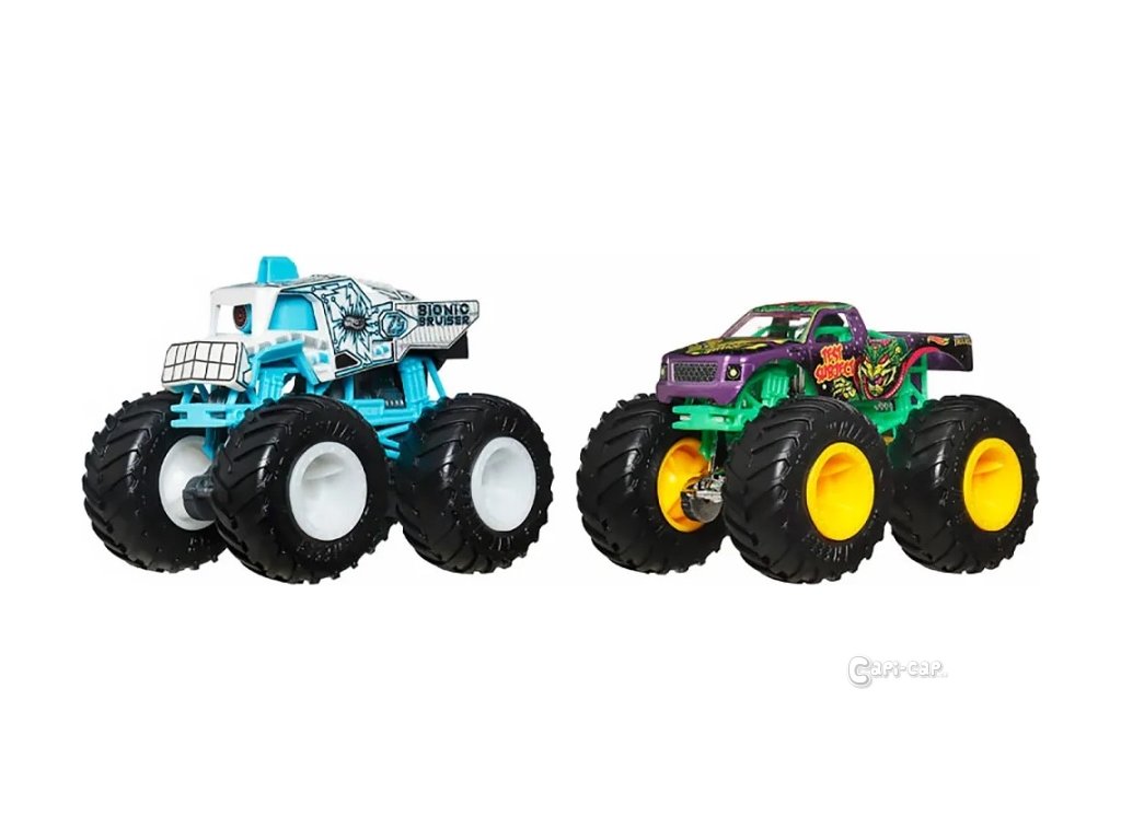 Každé ze dvou aut v měřítku 1:64 má nejen OBŘÍ kola, ale i velkou osobnost. Tyhle dvojice jsou schválně spárované tak, aby při nárazu předvedly epickou akci. V každém balení najdeš dva protivníky a jejich statistiku včetně jména, typu vozu, výkonu, jedinečného způsobu útoku a motorizace. To zaručuje skvělou zábavu při vyprávění příběhů!