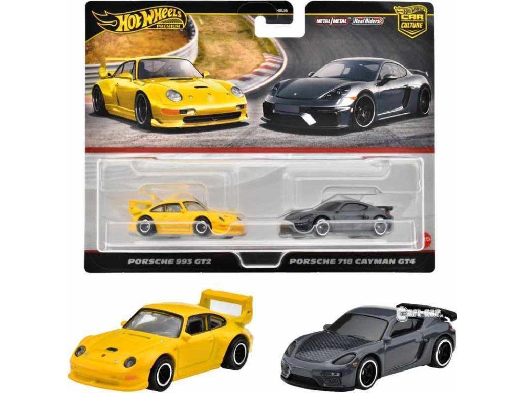 Hot Wheels® Premium angličák 2 ks Porsche 993 GT2 & Porsche 718 Cayman GT4