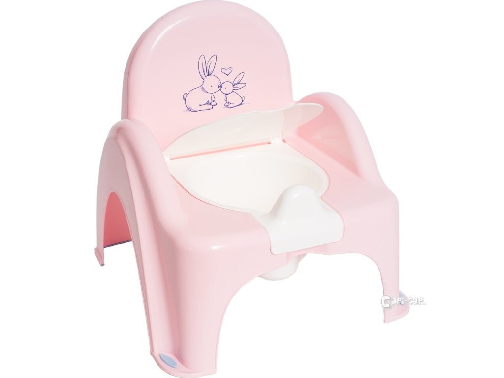 Dětský nočník s obrázkem králíčků v krásných pastelových barvach. Moderní design, kvalitní zpracování, jednoduchá údržba, to vše nočník nabízí. Dětský nočník je vyroben ve tvaru toaletní mísy, s zaklápěcím prkénkem. Vnitřní část lze vyndat a umýt. Je lehký, kompaktní a díky svému tvaru, vysoké opěrce zad a širokému sedátku poskytuje dětem pohodlí. Nočník po vyčurání hraje melodii. Rozměry dxvxš cca 38x23x25 cm.