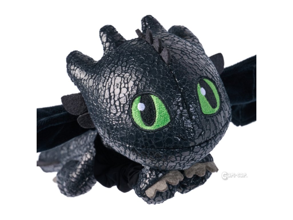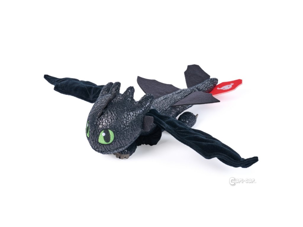 Plyšák Bezzubky o velikosti 30 cm. Křídla obsahují pásku, kterou lze draka přichytit např. na ruku. Dále pak pomocí gumových úchytů lze draka vystřelit do prostoru jako výstřelem z praku.