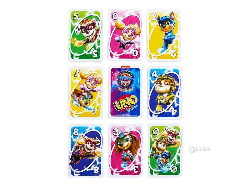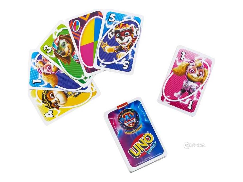 Milovníci UNO® Junior a filmu Tlapková patrola ve velkofilmu si zamilují tuto karetní hru, která obsahuje grafiku inspirovanou oblíbenými postavami a scénami z filmu. Hra nabízí tři úrovně – začátečník, střední a pokročilý – takže mladší hráči mohou růst ve svých herních dovednostech. A když vám zůstane poslední karta, nezapomeňte křičet "UNO!" Skvělý dárek pro fanoušky Tlapkové patroly a milovníky karetních her od 3 let. Barvy a vzhled karet se mohou lišit.
