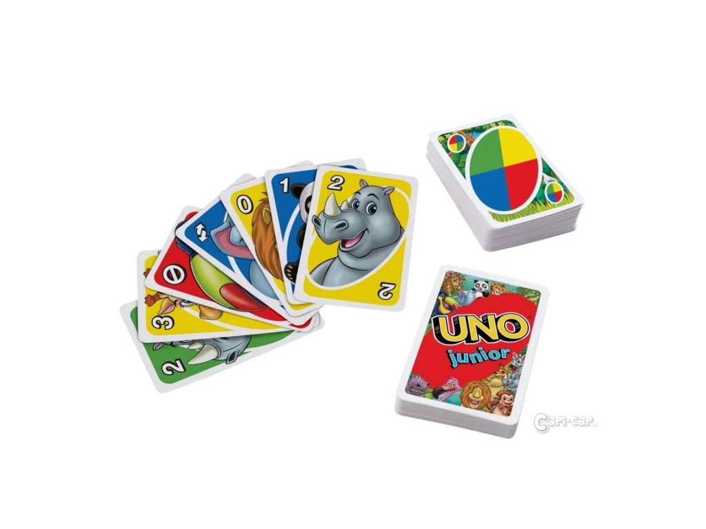 Tato zjednodušená karetní hra UNO® Junior zvířátka pro mladší hráče má několik úrovní hry, takže děti mohou s hrou růst. Na kartách jsou pro každé číslo od 0 do 8 vyobrazena roztomilá zvířátka ze zoo, takže přiřazování je snadné už pro děti od 3 let. Tři úrovně hry umožňují, aby hra držela krok s vývojem dítěte. Hráči závodí, kdo se zbaví všech svých karet tím, že je přiřadí ke kartě zobrazené na vrcholu balíčku, a to buď podle barvy, nebo podle zvířete/čísla. Až vám zůstane jedna karta, nezapomeňte zakřičet "UNO!". Barvy a provedení se mohou lišit.