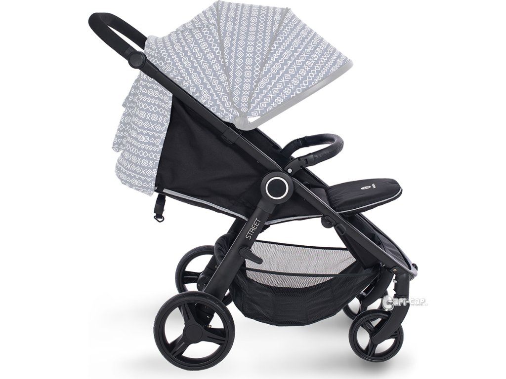 Kočárek hravě zvládne jízdu nejen na ulici, ale poradí si s terénem i mimo město. Je maximálně praktický, skladný, jednoduše ovladatelný, bezpečný a stabilní. Tyto vlastnosti ocení zejména moderní rodiče, kteří si Street zvolí pro jeho elegantní design, kvalitní zpracování a nepřehlédnutelný komfort, který dítěti poskytuje od 6 měsíců do 25 kg.