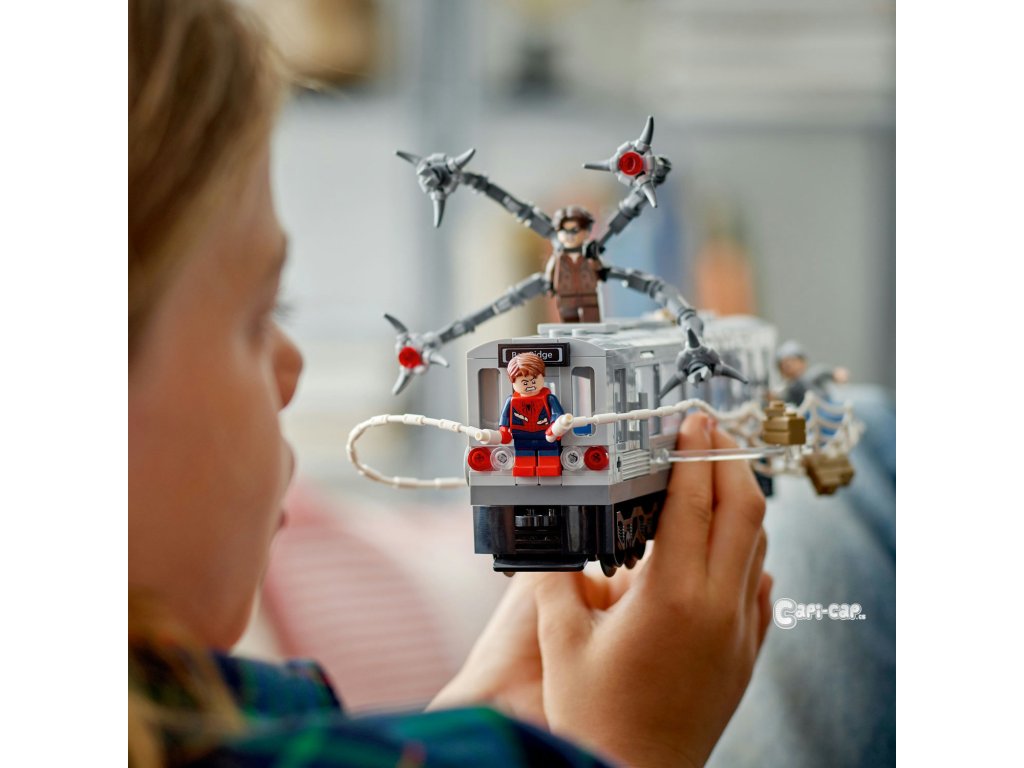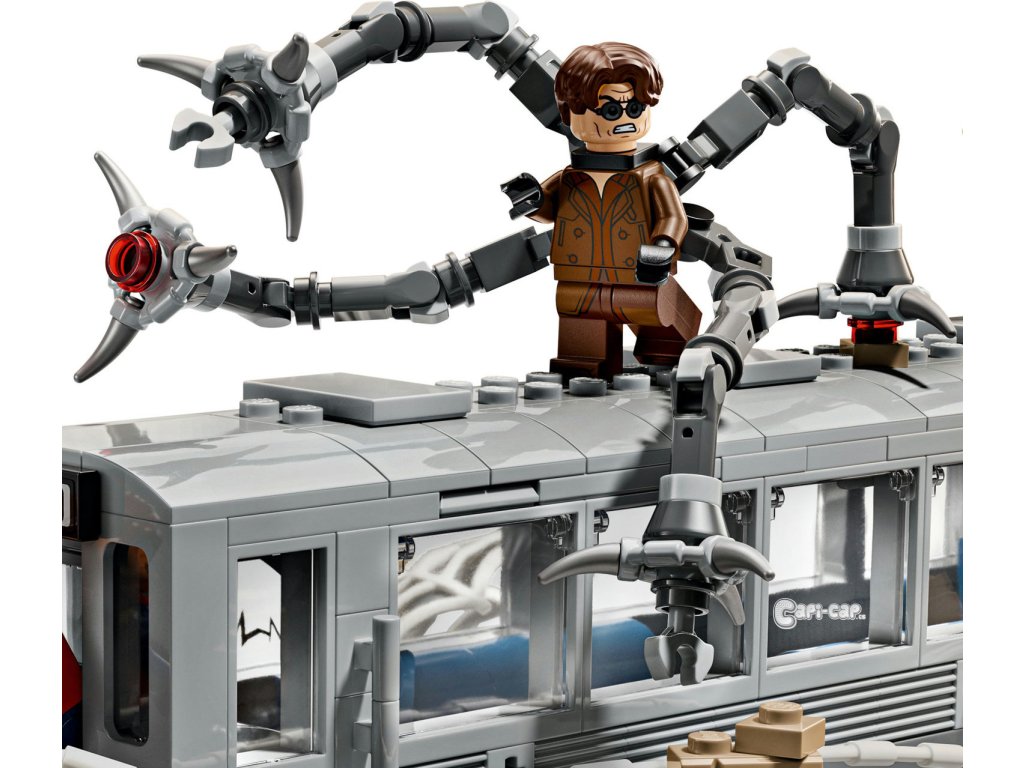 Akční dobrodružství – Spider-Man použije velkou pavučinu k zastavení uhánějícího vlaku s cestujícími na palubě, ale Doc Ock vlak rozdrtí svým mechanickým chapadlem