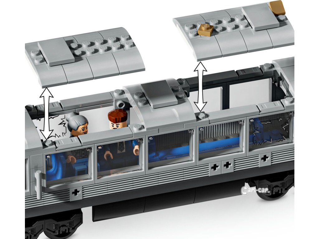 Sběratelské předměty LEGO® ǀ Marvel – Minifigurka Spider-Mana má hlavu s maskou i bez ní a střecha vlaku umožňuje přístup do interiéru, kde se může usadit cestující