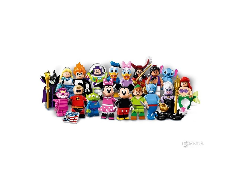 Každá minifigurka má vlastní speciální příslušenství, stojánek a sběratelský letáček. Série obsahuje tyto oblíbené postavičky ze světa Disney pohádek :