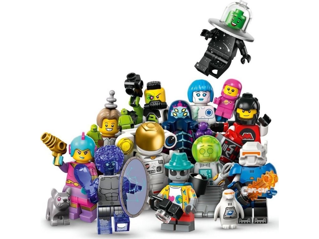 V každém balení najdete 1 vesmírnou minifigurku LEGO z 12 postav: Mutant Blacktron, průzkumnice ledové planety, podvodník, robotický komorník, mimozemský Broukozoid, retro vesmírná hrdinka, android sestřička, fanoušek v kostýmu létajícího talíře, M-Tron powerlifter, mimozemšťan turista, Orion a astronaut na vesmírné procházce.