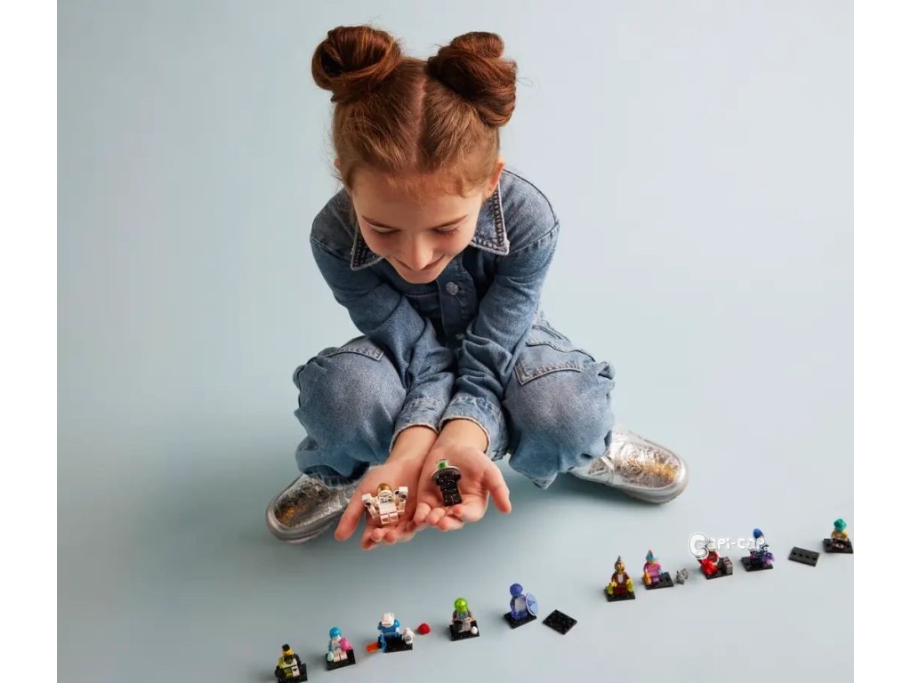 Všech 12 sběratelských vesmírných minifigurek LEGO je připravených k hraní zábavných mezihvězdných příběhů. Každá je dodávána v krabičce s překvapením s alespoň 1 doplňkem a informačním letáčkem pro sběratele. Děti si tyto sběratelské dárečky zamilují a užijí si s nimi hodiny zábavného akčního hraní, které si budou moct vychutnávat samy nebo s kamarády.