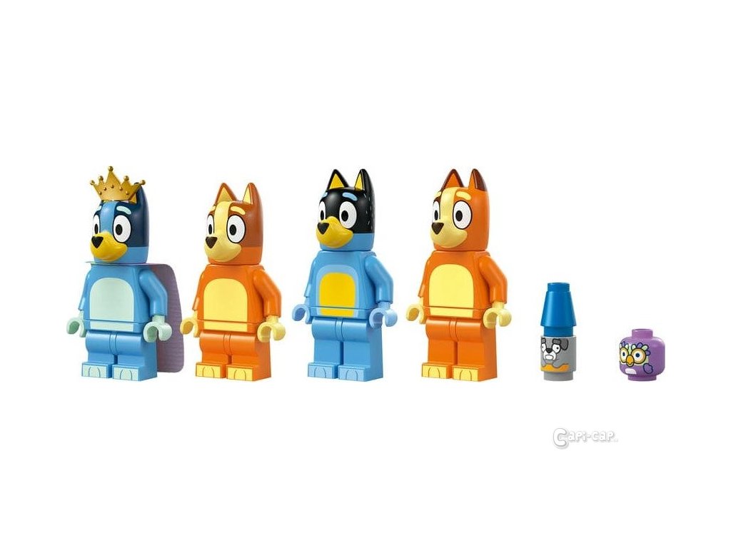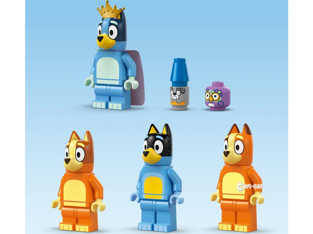 Interaktivní hračka – Modulární domeček a zahrada obsahují minifigurky Bluey, Bingo, maminky a Bandita a oddělitelné místnosti: Hernu, kuchyň, 2 pokoje, trůnní sál, toaletu a koupelnu