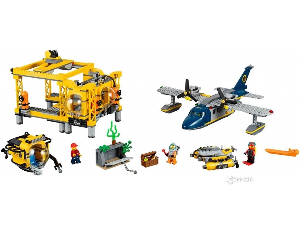 Připojte se k LEGO City hlubinným průzkumníkům v operaci na základně hluboko pod mořskou hladinou! Pomozte expertům analyzovat vzorky odebrané z mořského dna, zatímco nad hladinou silný hydroplán přiveze ponorku a nové zásoby kyslíku. Ponořte ponorku do vody a vydej se na výzkum záhadné truhly zamčené v podvodní zátoce. Pomocí robotické paže ponorky prořízni železný řetěz a otevři bránu, ale pozor, je tu žralok!