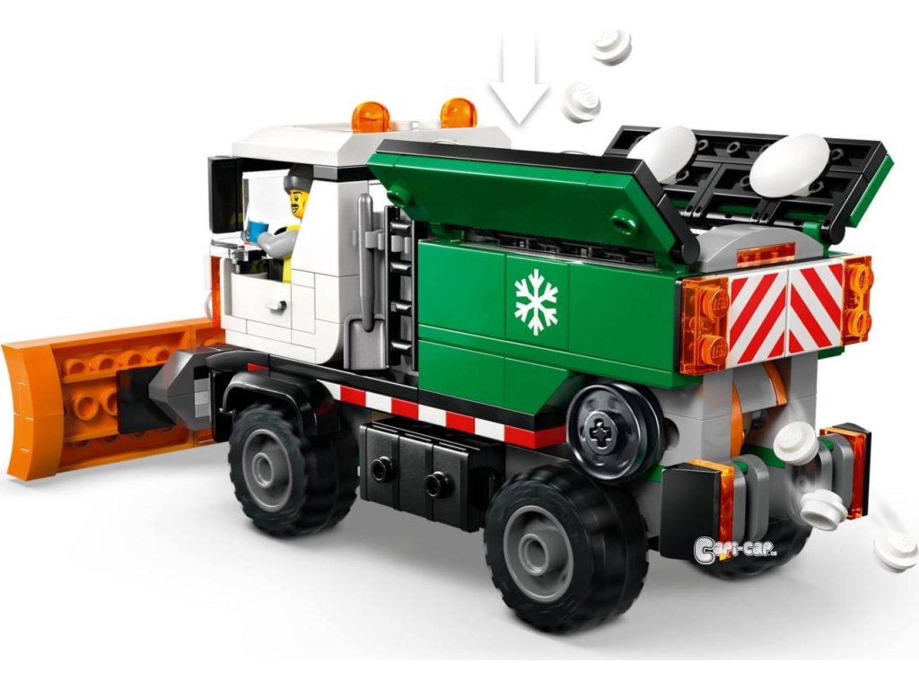 Funkce sypání soli je aktivována tlačením vozidla, kdy malé bílé dílky vycházejí ze zadní části zásobníku, což přináší interaktivní prvek a zábavu. Model je navržen tak, aby podporoval rozvoj motorických dovedností a prostorové představivosti, a lze jej kombinovat s dalšími stavebnicemi z řady LEGO® City pro rozšíření herního zážitku.