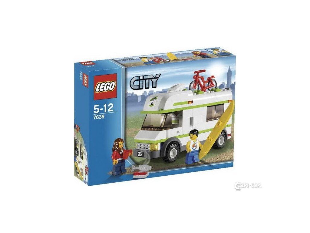 LEGO 7639 CITY - Karavan. V LEGO City začaly prázdniny! Je čas naložit karavan a vyrazit k vodě. Hlavně nezapomenout na surfovací prkno, kolo a gril s rybou na piknik. Obsahuje 2 figurky.