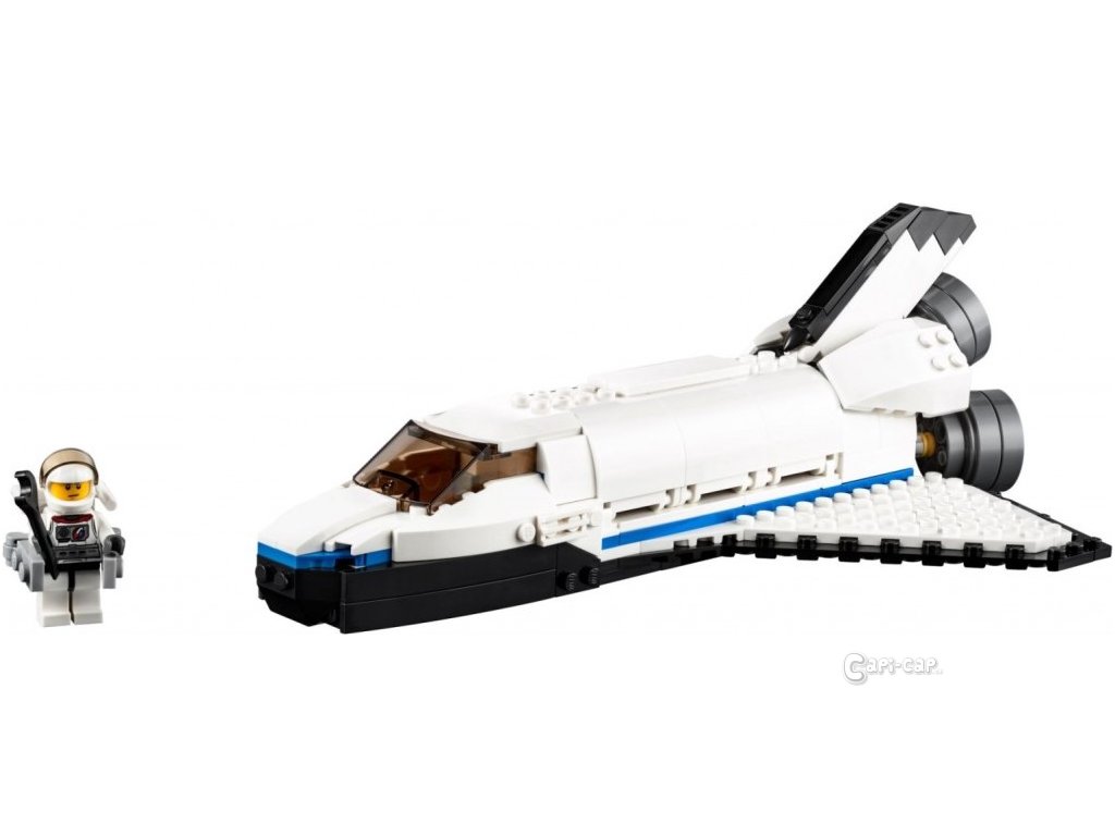 Vyraz na Měsíc na palubě úžasného Vesmírného průzkumného raketoplánu, součástí sady je kokpit pro minifigurku, velké motory a také autentické bílo-černo-šedé barevné schéma. Vyraz na odvážnou vesmírnou procházku spolu s astronautem a jeho zádovými raketovými tryskami, otevři nákladový prostor, rozlož křídla satelitu a s pomocí robotické paže ho vypusť na oběžnou dráhu. A když konečně přistaneš na Měsíci, můžeš třeba raketoplán přestavět a vytvořit tak futuristickou Měsíční stanici, kde můžeš experimentovat s pěstováním brambor nebo závodit s parádním Vesmírným roverem přímo na měsíčním povrchu.
