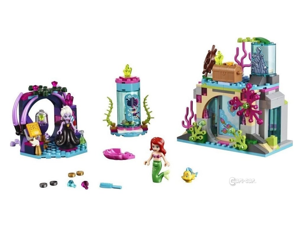 Vstup do Arieliny tajné jeskyně od Disney Princess™ a objev všechny poklady, které našla v mořských hlubinách! Vyraz ven a spolu s Flounderem si hrajte mezi skalisky. Navštiv mořskou čarodějnici Uršulu v jejím úkrytu. Podepíše s ní Ariel smlouvu a vymění svůj hlas za lidské nohy a šanci žít na pevnině? Použij otočný podstavec a přeměň Ariel z mořské panny na člověka a poprvé v jejím životě ji nech postavit se na skutečné nohy.