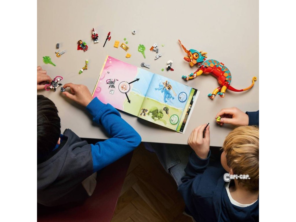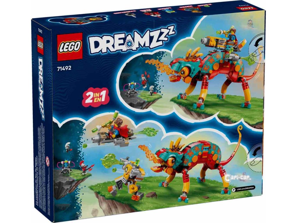 "nspirujte děti ke kreativitě se stavebnicí LEGO® DREAMZzz™ (71492) Mateo a jeho ohnivý chameleon, se kterou se kluci a holky od 7 let s hrdinou Mateem vydají zachránit Logana před zlotřilou Kybervěcí. Malí snílci si užijí spoustu zábavy při stavění figurky chameleona, kterou můžou sestavit hned 2 způsoby – postaví si ohnivého chameleoního strážce s blasterovou věží a 4 vystřelovači nebo rychlý tryskáč a minirobota. Chameleon má pohyblivou tlamu, hlavu, ocas, oči a nohy a oba modely jsou nabité skvělými detaily, včetně modulárních motorů, které jsou kompatibilní s ostatními stavebnicemi z řady LEGO® DREAMZzz™ 2025 (prodávají se samostatně). Minifigurky Matea a Zeroa a figurky Logana, Z-Fleka a Kybervěci vdechnou příběhu život a inspirují k nápaditému hraní. Tato fantastická stavebnice představuje skvělý dárek k narozeninám nebo jakékoli jiné příležitosti a součástí je návod na stavění vedený příběhem, se kterým se děti vrhnou rovnou do dobrodružství a stanou se hrdiny Světa snů.