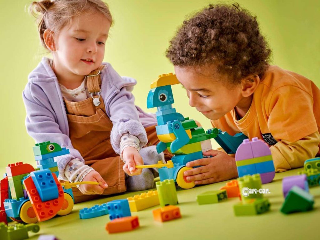 Dopřejte malým stavitelům pořádnou porci zábavy se stavebnicí 3 v 1: Dinosauři na kolečkách (10451). Tato dinosauří stavebnice je plná tvořivých herních možností a součástí je řada barevných kostek, ze kterých lze vytvořit 3 páry kreativních modelů. 108 kostek a dílků v této stavebnici LEGO® DUPLO® se zvířátky lze sestavit 3 různými způsoby: Diplodocus a T-rex, triceratops a stegosaurus nebo pteranodon a parasaurolophus. Děti si můžou vytvořit ještě zábavnější figurky přidáním pohyblivého krku a ocasu, křídel nebo tlamy, kterou lze otvírat a zavírat. Dinosaury lze umístit na podložku s kolečky, takže stavebnice potěší všechny malé milovníky vozidel LEGO DUPLO. Tato stavebnice LEGO DUPLO 3 v 1 nabízí spoustu příležitostí k hravému učení. Model se skládá z kostek, se kterými se snadno manipuluje. Stavebnice dětem pomůže rozvíjet trpělivost, soustředění a představivost při nekonečném stavění a přestavování kreativních zvířátek. Obsahuje 108 dílků.