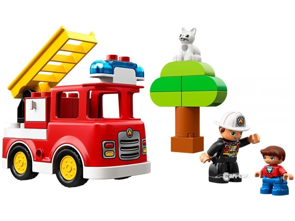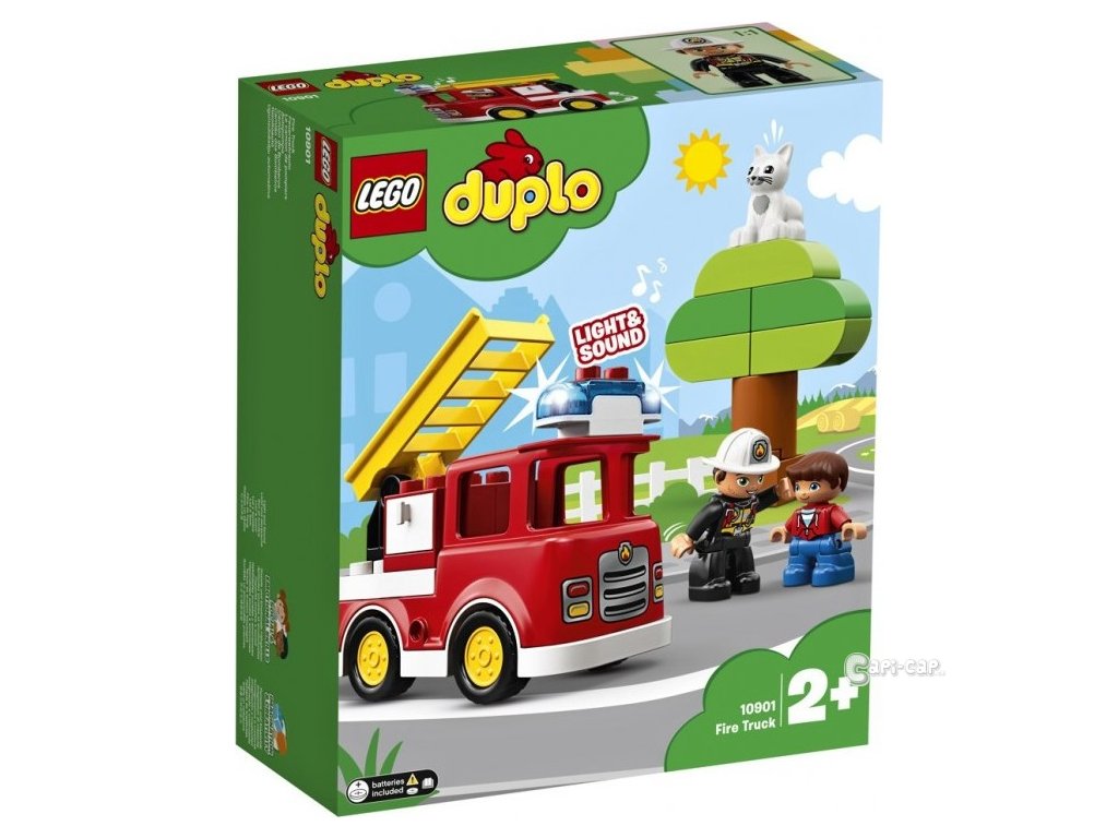 Přehrávejte si scénáře ze skutečného života se sadami LEGO® DUPLO® Moje město, které tvoří snadno pochopitelný svět s moderními DUPLO figurkami. Umožněte vašemu malému hasiči přispěchat na pomoc v 10901 Hasičském autě pro děti s blikajícím modrým světlem a zvukem sirény! Hasičské auto je snadno sestavitelné a obsahuje otevírací přihrádku a žebřík. Předškoláci budou nadšení, když pomohou hasiči zachránit kočku ze sestavitelného stromu! Obsahuje 2 DUPLO figurky a figurku kočky.