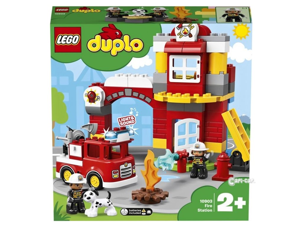 Přehrávejte si scénáře ze skutečného života se sadami LEGO® DUPLO® Moje město, které tvoří snadno pochopitelný svět s moderními DUPLO figurkami. Navštivte snadno sestavitelnou 10903 Požární stanici, hrajte si, pomáhejte hasičům při nácviku hašení ohně a vyšplhejte po žebříku, abyste zachránili psa ve věži. Až vám někdo zavolá, pomozte svému předškolákovi naložit hasiče do hasičského auta, zapněte blikající světlo a sirénu a vydejte se na další odvážnou záchrannou misi! Součástí jsou 2 DUPLO figurky a navíc figurka psa.