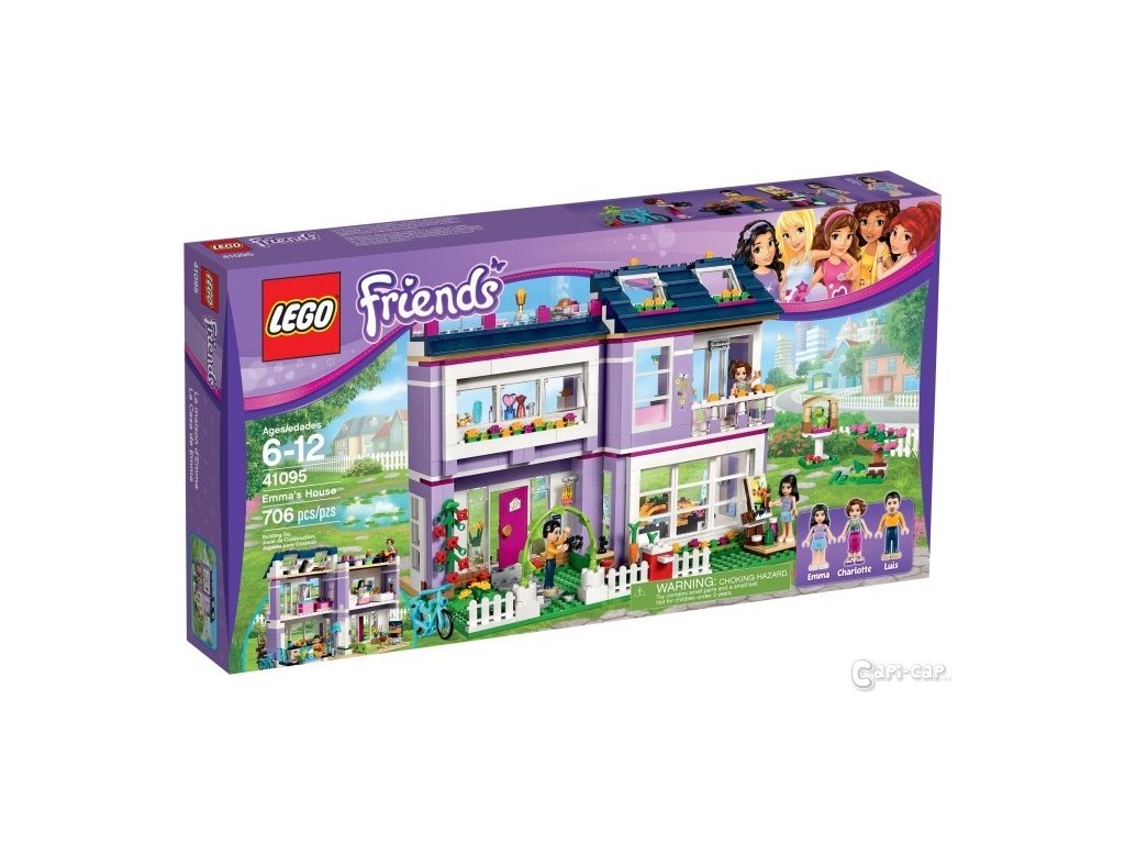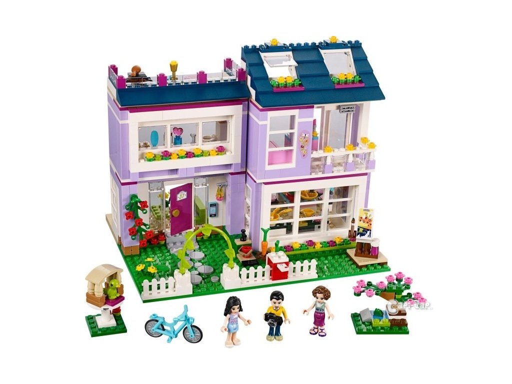 Postav si vysněný rodinný domek a vybav ho moderním zařízením! Při stavbě modelu LEGO Friends Emmin dům zjistíš, jak je celá Emina rodina šikovná a tvůrčí. V moderně zařízené kuchyni můžeš s Emou uvařit nějakou dobrotu.Máš tu zeleninu sklizenou z vlastní zahrádky a když otevřeš ledničku, najdeš v ní další čerstvé potraviny. Pak si sedni s Emou a její rodinou do obýváku před televizi s plochou obrazovkou a podívejte se na film. Ema velice ráda tráví čas se svými kamarádkami ve svém pokoji, který si sama navrhla, a kochá se pohledem z balkónu. Po dlouhé bublinkové koupeli můžeš Emě pomoci s make-upem u toaletního stolku s velkým zrcadlem.Potom si Ema může zajít do zenové zahrady a chvíli malovat. V zahradě je ptačí budka, kde bydlí její domácí ptáček.Můžeš jí pomoci připravit na střešní terase party s grilováním a pozvat její přítelkyně. Sadu je možné zkombinovat s modelem 41090 Zahradní bazén Olivie a rozšířit tak zahradu domu. Součástí sady jsou 3 minipanenky: Ema, maminka Charlotta, tatínek Luis a domácí ptáček.