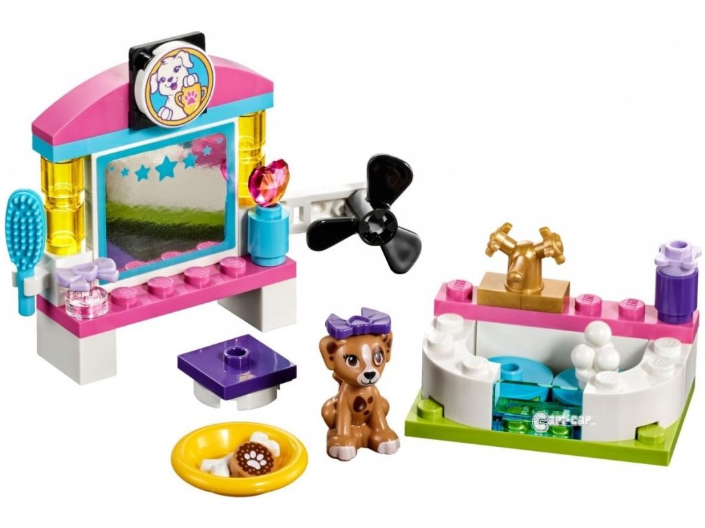 Laru pečlivě umyj psím šampónem. Potom ji posaď na její speciální psí stoličku před zrcadlem, abys ji učesala, zatímco jí větrák vysuší srst. Užij si všechnu tu péči předtím, než jí dáš pro štestí štavnatou kost!