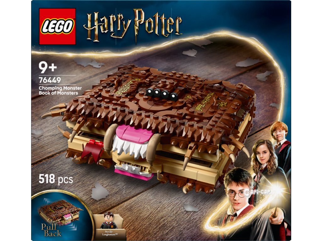 Tato zábavná fantasy stavebnice obsahuje propracovanou kostkovou repliku Obludného obludária, učebnice o péči o kouzelné tvory. Model má skrytá kola a natahovací funkci – knihu položte na rovnou plochu, natáhněte, pusťte ji a sledujte, jak se řítí pryč a při tom žvýká.