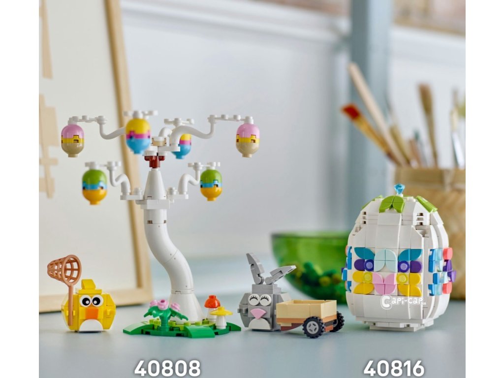 Model je vhodný nejen jako jarní dekorace, ale také jako zábavný stavební projekt, který rozvíjí kreativitu a jemnou motoriku. Využití různých barevných a tvarových prvků dává uživatelům možnost experimentovat s designem a vytvářet originální kombinace. LEGO® 40816 je tak nejen sezónní ozdobou, ale i interaktivní stavebnicí, která může být součástí velikonočního stolování nebo jarního domácího výzdoby. Je ideální jako dárek pro děti i dospělé, kteří mají rádi tvoření s LEGO kostkami.