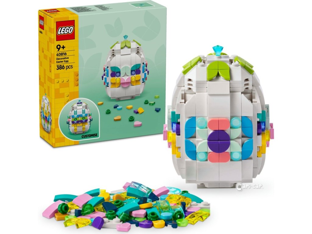 LEGO® 40816 Iconic Dekorativní velikonoční vajíčko je kreativní stavebnice určená pro děti od 9 let a všechny fanoušky jarních a velikonočních dekorací. Tento model je tvořen z 386 dílků a představuje vajíčko vysoké přes 10 centimetrů, které je možné sestavit a poté libovolně dozdobit pomocí přiložených barevných ozdobných dílků. Stavebnice nabízí odnímatelnou horní část, která odhaluje praktický úložný prostor uvnitř vajíčka, kam lze schovat drobné předměty.
