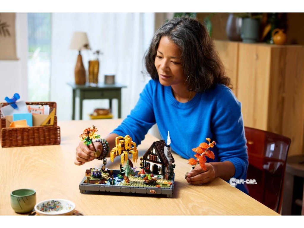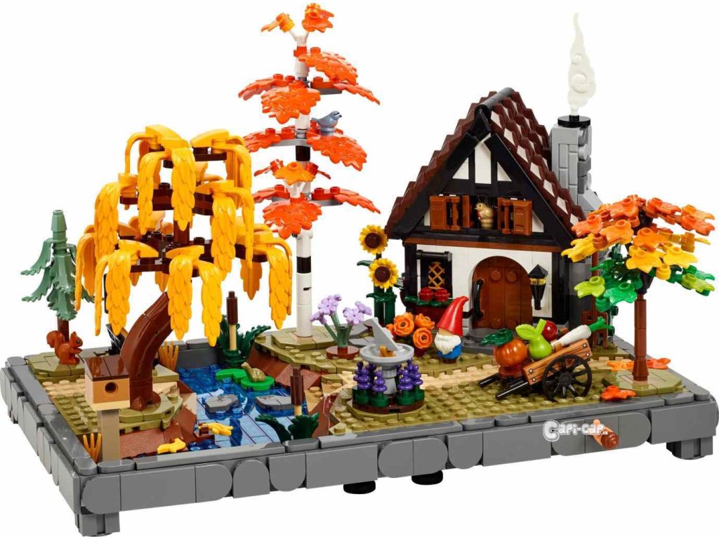 LEGO® Icons 11372 Chata a podzimní zahrada představuje detailně propracovanou stavebnici, která zachycuje kouzlo podzimní atmosféry v malebné chaloupce obklopené zahradou. Celý model je umístěn na základně s kamenným obrubníkem, která vytváří pevný a stabilní podklad. Stavebnice obsahuje 1102 dílků a je určena především pro dospělé stavitele, kteří ocení pečlivé detaily a možnost kreativního uspořádání jednotlivých prvků.