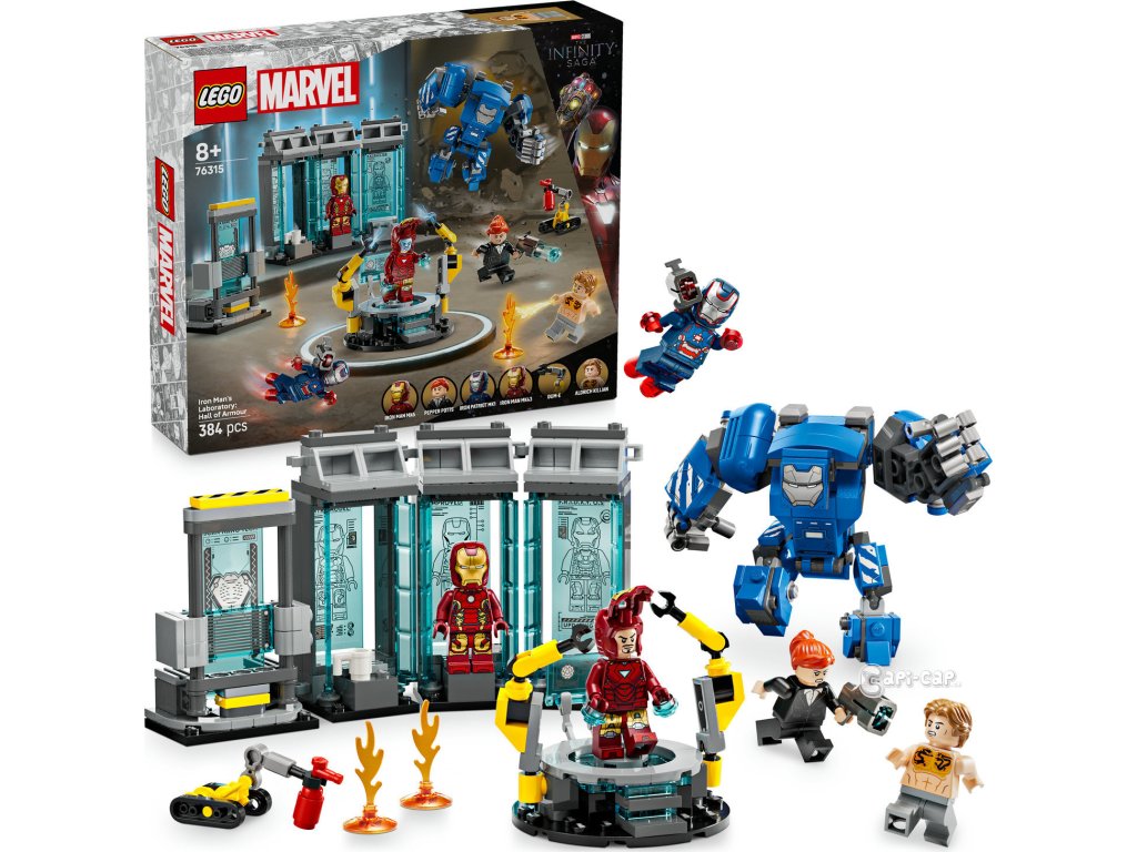 Stavebnice Iron Manova laboratoř: Síň brnění (76315) zavede malé superhrdiny a fanoušky filmů Marvel Avengers do Iron Manovy kultovní laboratoře. Tato dětská stavebnice je plná figurek LEGO® ǀ Marvel a skvělých funkcí, které inspirují k nápaditým dobrodružstvím a představuje ideální dárek pro kluky a holky od 8 let. Tato stavebnice LEGO ǀ Marvel obsahuje 3 sady brnění a 3 minifigurky brnění Iron Mana: MK1, MK43 a MK6. Stavebnici doplňují minifigurky Pepper Pottsové a padoucha Aldricha Killiana, sestavitelný robot Dum-E a velké robotické brnění Igor Iron Man MK3 s pohyblivými pažemi a nohama a kokpitem s místem pro minifigurku. Mezi další funkce stavebnice patří plošina na údržbu se 2 robotickými rameny a velkým skenovacím zařízením. Nechybí hasicí přístroj a 2 ohnivé dílky a 2 vystřelovače na akční souboje. Pro ještě větší digitální zábavu si stavitelé můžou přibližovat a otáčet modely ve 3D a sledovat svůj pokrok pomocí zábavné a intuitivní aplikace LEGO Builder. Model obsahuje 384 dílků.