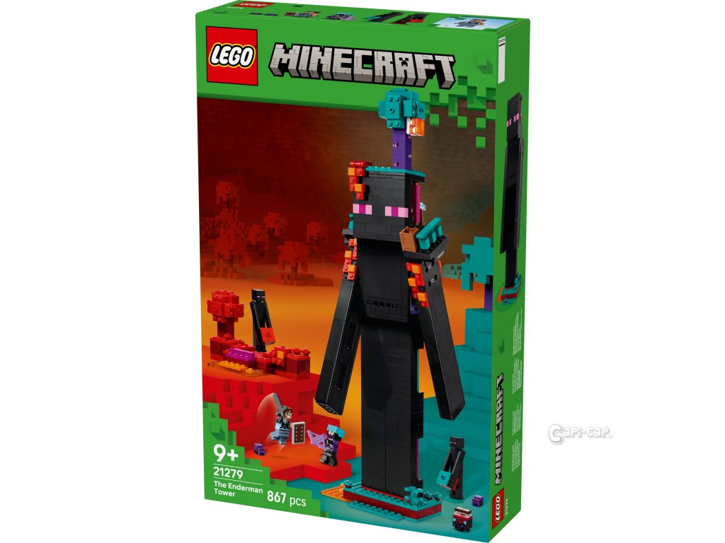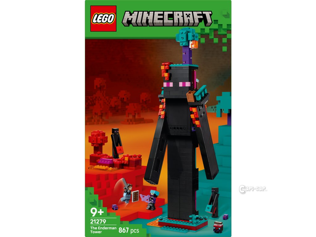 Kvalitní stavebnice Endermanova věž (21279) je ideální pro děti, které mají rády kreativní hraní a videoherní dekorace. Díky modulárnímu designu lze model přestavět a užít si nekonečné možnosti hraní a vystavování. Tato stavebnice LEGO® Minecraft® poslouží jako ideální dárek pro kluky a holky od 9 let. Hlavním modelem je věž ve tvaru Endermana s portálem do Netheru v hlavě, balkony na ramenou a 2 místnostmi s pracovním stolem, zaklínacím stolem a úložným boxem na perly z enderu. Vylezte po žebříku po noze modelu, prohlédněte si paže modelu, které jsou plně pohyblivé, a venku si prohlédněte prvky podivného a karmínového lesa. Stavebnice obsahuje minifigurku dimenzionálního obránce, nájezdníka říše a 2 Endermanů a 2 figurky mobů endermit. Mezi zbraněmi najdete kuši, netheritový meč a štít z Minecraftu. Endermanovu věž lze přestavět na 2 barevně odlišené pevnosti, což se skvěle hodí na PvP hry (hráč proti hráči). Stavějte model s aplikací LEGO® Builder. Stavebnice obsahuje 867 dílků.