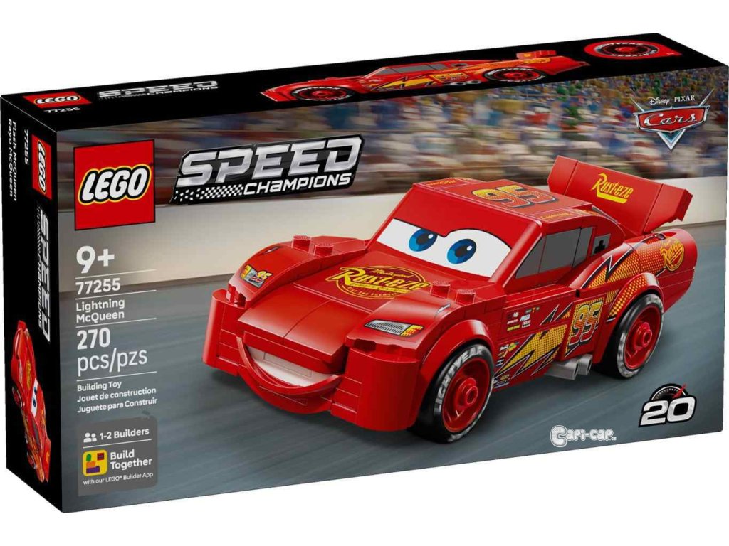 LEGO® Speed Champions 77255 Blesk McQueen je stavebnice určená dětem od 9 let, která nabízí možnost sestavit detailní repliku ikonického závodního auta z filmu Disney Pixar Auta. Tento model, obsahující 270 dílků, věrně zachycuje charakteristický vzhled Bleska McQueena v jeho žluto-oranžové barevné kombinaci s výrazným číslem 95 na kapotě a bocích. Díky autentickým nálepkám, jako je logo sponzora Rust-Eze a nápis „Lightyear“ na pneumatikách, působí model velmi realisticky a přináší pocit závodní atmosféry.
