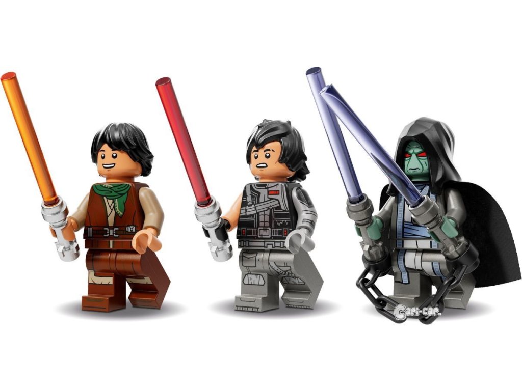 3 minifigurky LEGO® Star Wars™ – Sig Greebling se světelným mečem, Darth Dev se světelným mečem a Solitus s dvojitým světelným mečem s řetězem