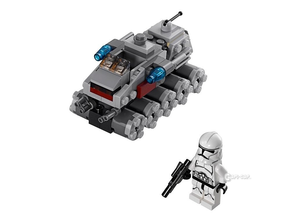 Vstup s Turbo tankem Klonů do mini světa mikrobojovníků LEGO Star Wars. Tento parádní mini model má otáčecí kola, 2 raketové střely a mini kokpit pro troopera Klonů. Připrav se na mikro bitvu! Obsahuje minifigurku troopera Klonů a blasterem.
